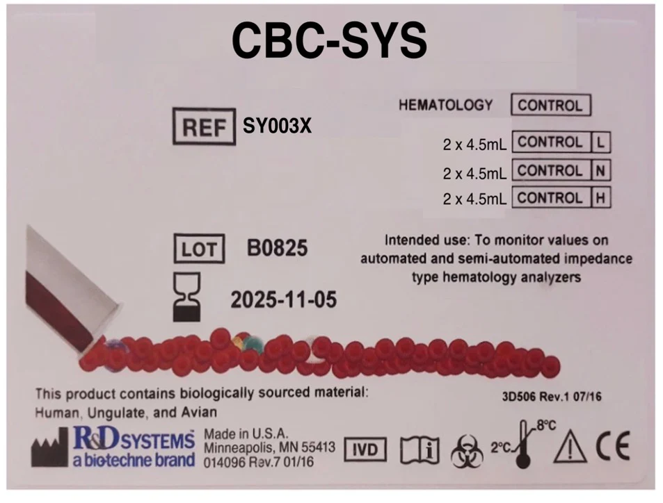 CBC-SYS là bộ kiểm chuẩn máu toàn phần (assayed whole blood control) được thiết kế để theo dõi giá trị xét nghiệm trên các máy Dirui.
