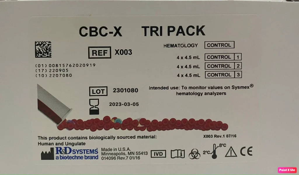 CBC-X là bộ kiểm chuẩn 3 mức (tri-level control) được thiết kế chuyên biệt cho các dòng máy huyết học Sysmex 5TP. CBC-X được gắn mã vạch (bar-code) để truy cập đúng tệp QC.