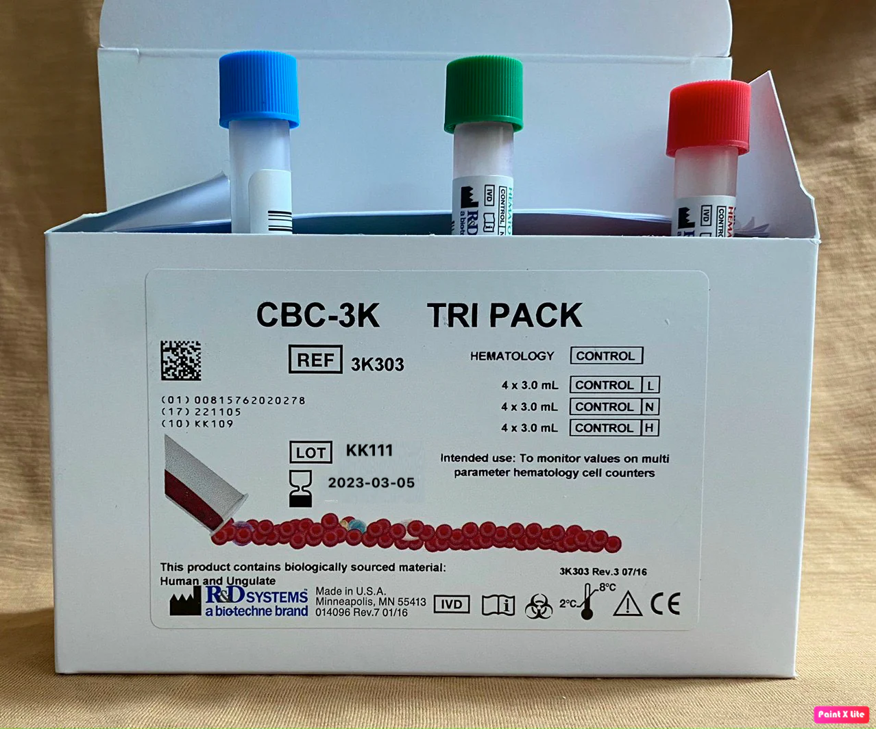 CBC-3K là bộ kiểm chuẩn 3 mức (tri-level control) dùng để theo dõi chất lượng xét nghiệm cho các máy huyết học 5TP. Bảng giá trị (Assay table) bao gồm 20 thông số.